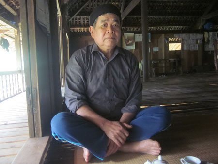 | Ông Ma Văn Luồm đang chỉ vùng đất trước kia là đền Nghĩa Đô |