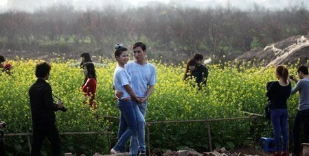 Các bạn trẻ háo hức chụp ảnh tại "thiên đường hoa Tết" Nhật Tân - Hà Nội. Ảnh: Lê Anh Dũng |