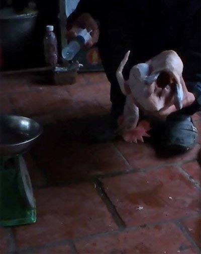 | Bơm vào đến đâu, con gà mía gày nhẳng bỗng "béo" lên cực nhanh (Ảnh: GDVN) |