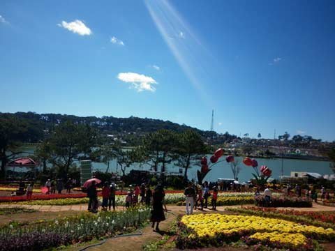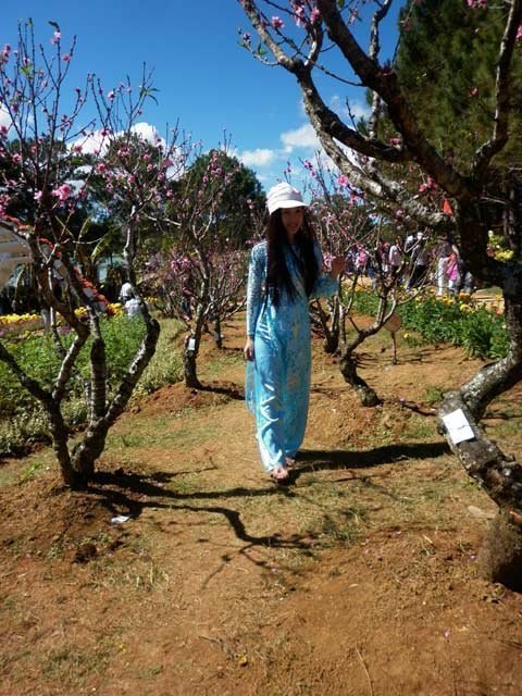 Đà Lạt vào xuân rực rỡ hoa và nắng. Thiếu nữ e ấp dạo xuân cùng hoa và gió.