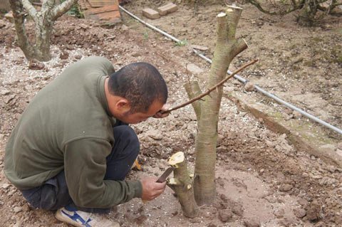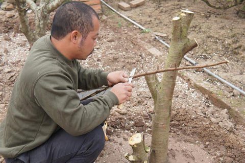 | Người ghép đào có con dao để ghép mắt đào đặc biệt. Dao cắt ngọt thì mắt ghép nhanh nẩy mầm. |