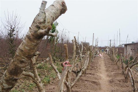 | Chăm sóc vườn đào cũng bận bịu chẳng khác gì nuôi con mọn... |