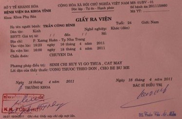 Tối ngày 16/4/2011 bệnh nhân là Mai Thị Bích Thảo vào Bệnh viện Đa khoa Khánh Hòa sinh con gái đầu lòng. Tuy nhiên, đến ngày 18/4 chị Mai xuất viện thì anh Mai Xuân Đông, chồng chị Mai lại nhận được tờ giấy xuất viện ghi tên vợ anh là Trần Công Bình, giới tính: nam, chẩn đoán: chuyển dạ...