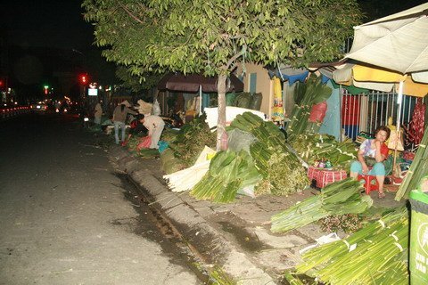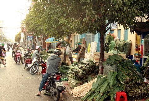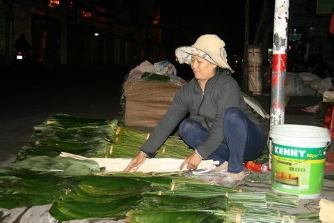 Chợ lá chiếm toàn bộ vỉa hè trải dài hơn 500m nhưng vẫn được chính quyền địa phương cảm thông bởi một năm chỉ một lần mà mặt hàng lại rất đặc trưng phục vụ ngày Tết. Ngoài lá dong, nơi đây còn bán lạt buộc, khuôn bánh chưng.
