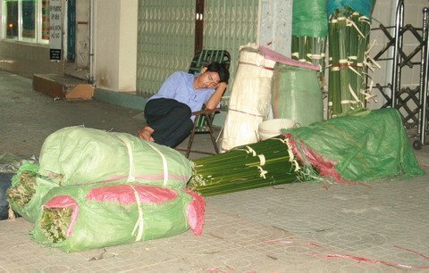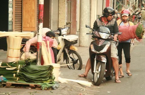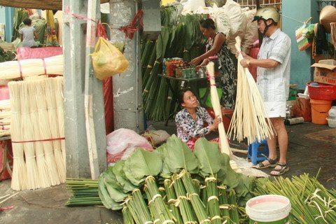 | Không chỉ mua lá, khách hàng còn mua lạt buộc gói bánh chưng bánh tét. Chợ lá duy nhất ở trung tâm Sài Gòn góp phần giữ thói quen gói bánh Tết của một bộ phận người dân TP. |
