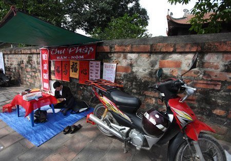 | Quán chữ của thầy đồ ở độ tuổi khá trẻ đến từ Văn Lâm, Hưng Yên. |