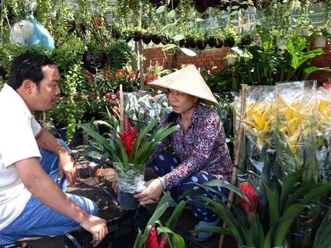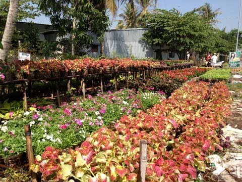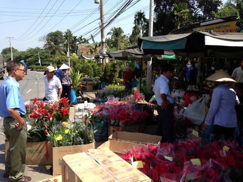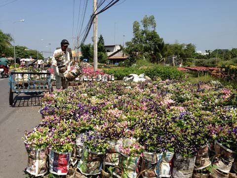 | Một điểm tập kết hoa tết chờ thương lái đưa về TP Hồ Chí Minh. |