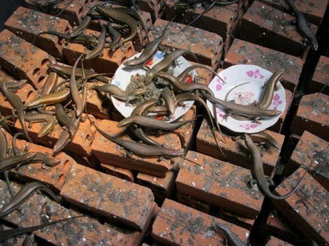 | Thế nhưng, ở miền Nam, thằn lằn có tên gọi là "rắn mối" và được nuôi với số lượng rất lớn ở các trang trại. Mục đích chính là để biến chúng thành... đặc sản. |