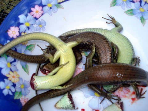 | Thịt thằn lằn không chỉ thơm ngon mà còn được đồn thổi là một vị thuốc cường dương hữu hiệu. |