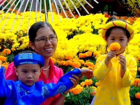 Tết về như một tiếng reo vui. Xuân trở nên long lanh trong những đôi mắt trẻ thơ biêng biếc. Và niềm vui cũng ắp đầy trong những nụ cười, trong những nét hồn nhiên tạo dáng để chụp hình.