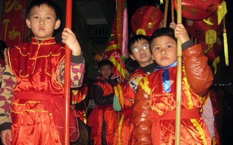 ![]() Khoảng 17 giờ 30 phút khắp đường làng, ngõ xóm đồng loạt nhộn nhịp nổi vang trống, kèn cùng với những màn múa lân, để rước kiệu “ông lợn” ra đình. |