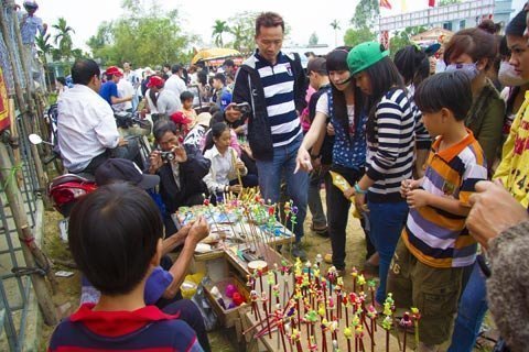 | Các Em nhỏ và Du khách rất thích thú với hàng bán tò he truyền thống tại làng Sình, xã Phú Mậu, TT - Huế ,ngày mùng 10 Tết. |