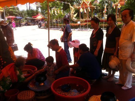 | Trật tự, kính cẩn xếp hàng làm lễ buộc chỉ cổ tay |