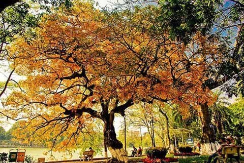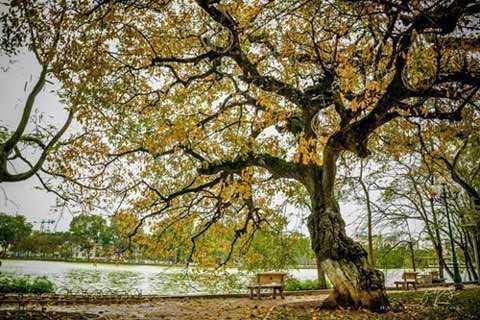 Khác với nhiều loài cây thường rụng lá về mùa thu và mùa đông, cây lộc vừng lại đổ lá mỗi khi xuân về. Khoảnh khắc tán lá xanh um, tươi tốt của cây lộc vừng cổ thụ chuyển sang màu vàng rực rỡ, soi sáng một góc hồ đã được mệnh danh là “Mùa thu châu Âu ở Hà Nội”. Lộc vừng đẹp không chỉ bởi tán lá rộng, tươi tốt xum xuê, bởi dáng đứng cứng cáp, sừng sững bên cạnh hồ mà còn đẹp bởi cách mà những nhánh cây sà xuống mặt hồ, in bóng xuống cái nền xanh ngắt ấy, tạo nên một cảnh đẹp vô cùng nên thơ ngay giữa trung tâm thành phố, thu hút sự chú ý của rất đông người qua đường và khách du lịch tới Hà Nội thời gian này.