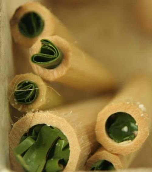 Lấy các loại lá này cuốn thành hình phễu để gắp vào đó các loại thức ăn. Các món ăn kèm với lá như thịt heo ba chỉ, tôm rang, da heo thái mỏng bóp trộn cùng bột gạo nếp rang.