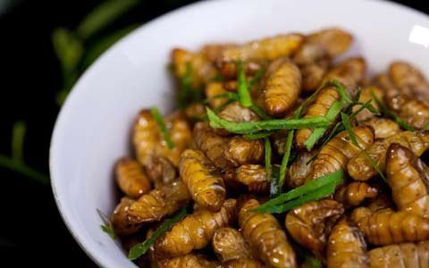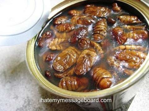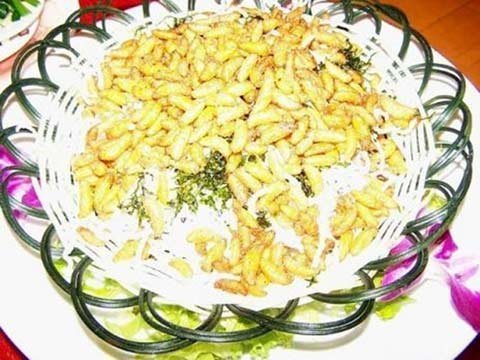 | Nhộng tằm: Đây là món ăn rất phổ biến ở Việt Nam và các nước khu vực Đông Nam Á. Nhộng tằm ở Việt Nam thường được người sử dụng chiên khô rồi ăn. |