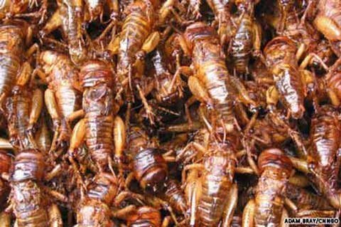 | Dế: Dế là món ăn lâu đời ở Việt Nam cũng như nhiều quốc gia khác, Dế có chứa nhiều chất rất tốt cho cơ thể và không hề có hại cho sức khỏe. |