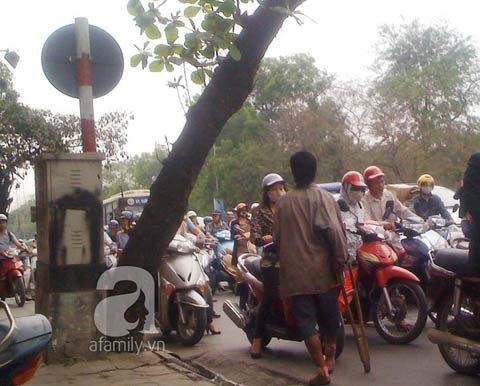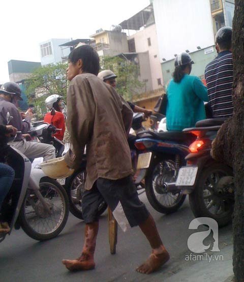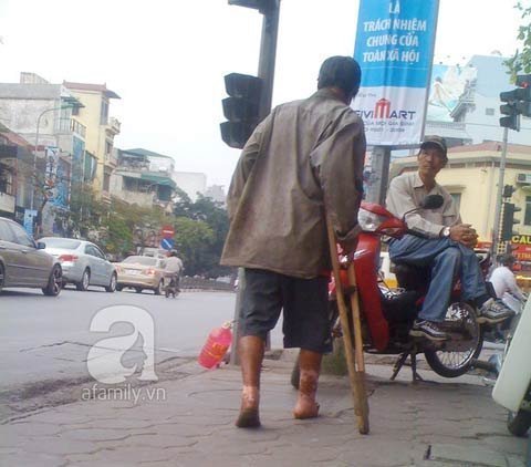 Sau khi đèn chuyển xanh, gã vội vã lết lên vỉa vè và nhét vội những đồng tiền của người đi đường vào túi rồi nhanh chóng đứng tại khu vực cột đèn tín hiệu chờ đèn đỏ. Theo quan sát của chúng tôi cứ khoảng 3 phút gã lại hoàn thành một vòng xuống đường - lên vỉa hè, trên tay là "chiến lợi phẩm" thu được từ lòng thương hại của mọi người.