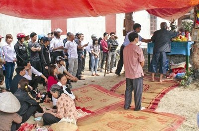 Một cụ già tự giới thiệu với tôi là “già làng” đứng lên cúng khấn gì đó. Sau đó mọi người thi nhau vái, bỏ tiền vào chiếc ban thờ, một số người còn nhờ cụ ông này khấn giúp với thần rắn và xin lộc từ thần.