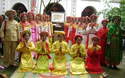 | Đông đảo người dân tham gia ăn tết lại ở đình làng. |