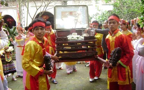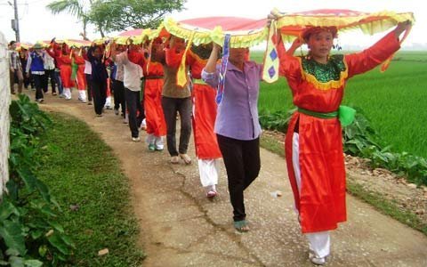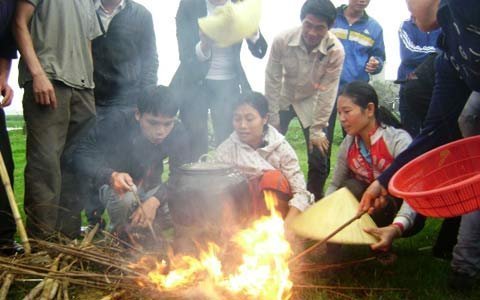 Vào ngày này, ngoài việc vui chơi, lễ hội của làng thì mỗi hộ dân trong làng đều làm bánh dày, thịt gà, cua, cá… thờ cúng như một cái Tết Nguyên đán thật thụ. Dọc các tuyến đường làng, cờ hoa giăng khắp nơi, trẻ con được mặc áo đẹp, người người đi “xông” nhà nhau và họ mời nhau chén rượu đầu xuân.
