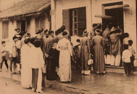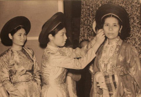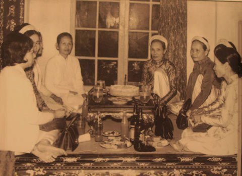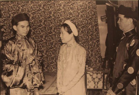 Tiệc cưới. Ảnh cưới vốn mang tính chất riêng tư của các cặp đôi, tuy nhiên, trước đây cũng có khá nhiều người muốn chia sẻ khoảnh khắc riêng tư của mình. Nhờ đó, những thế hệ sau có được nguồn tư liệu giá trị về văn hoá, phong tục và nếp sống của dân tộc qua các thời kỳ. (Ảnh chụp lại tại Bảo tàng Phụ nữ Việt Nam).