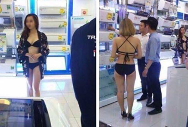 Siêu thị điện máy bắt nữ nhân viên mặc bikini bán điều hòa