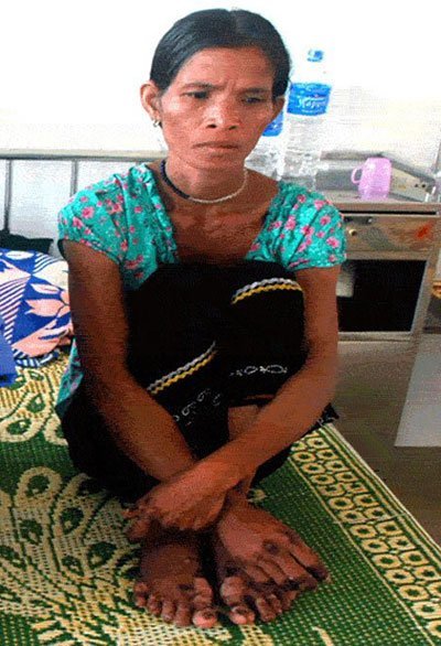 Lúc mới sinh ra, Thạch Thị Sa Ly (35 tuổi, ở Sóc Trăng) cũng bình thường, khỏe mạnh. Nhưng đến hơn 1 tuổi, phía sau lưng chị có vài mụn bướu nhỏ. Càng lớn, những mụn này cũng lớn theo và lan ra khắp người. Những khối u này đã che đi đôi mắt, lấp luôn sống mũi khiến gương mặt chị Sa Ly bị biến dạng.