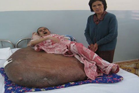 Năm lên 4 tuổi, anh Nguyễn Duy Hải (SN 1980, ở Lâm Đồng) bỗng bị nổi bướu ở chân phải, khối u ngày càng phát triển nhanh. Đến năm 17 tuổi, khối u đã nặng tới 28kg khiến anh đau đớn và không thể tự mình đi lại được. Khi đó, Bệnh viện Đa khoa Lâm Đồng đã cắt bỏ cái chân phải quá khổ của anh. Tuy nhiên, năm 21 tuổi, đoạn chân phải còn lại của anh Hải tiếp tục to ra. Theo thời gian, khối u phát triển bao kín cả phần mông và lưng với bề rộng phình to chừng 1,2m và nặng hơn 90kg.