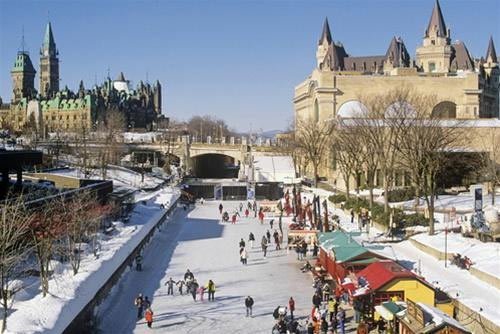 Kênh Rideau ở thủ đô Ottawa, bang Ontario, Canada đã đóng băng hoàn toàn.