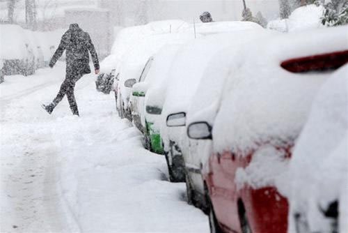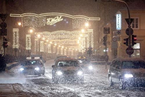 Màn tuyết buông dày xuống thủ đô Warsaw, Ba Lan, nơi nhiệt độ có lúc xuống