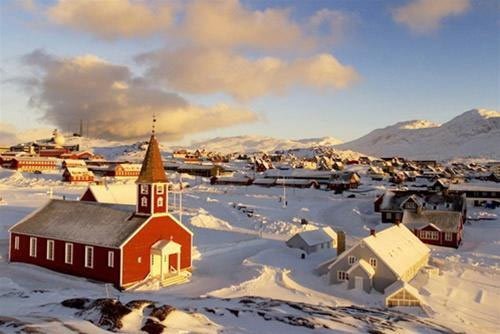 Nắng chiều mùa đông ở thành phố Nuuk, thủ phủ của Groenland, vùng cực Bắc