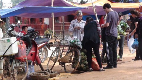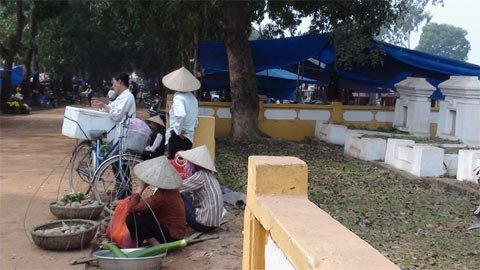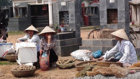 Một người dân địa phương cho biết: “Chợ họp gần 20 năm nay rồi. Đông nhất vào 3 tháng đầu năm và mấy tháng cuối năm. Người bán chủ yếu là dân cư quanh xã. Dân mình thấy người ở Hà Nội lên thăm mộ đông thì mang hàng lên bán, từ thịt bò, gà vịt đến hoa quả, nông sản. Đã quen với không khí nơi đây rồi, chả thấy sợ hãi gì. Chỉ cầu mong các cụ phù hộ, buôn bán được chút gì hay chút ấy. Kể ra, cái chợ cũng lạ đời...".
