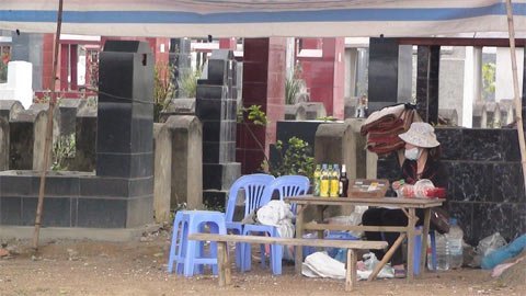 Hôm đông khách thì đông hàng, ít khách thì ít hàng. Ở đây còn có dịch vụ ăn uống ngay tại chỗ và cho thuê chiếu. Với 20.000 đồng, thân nhân của những ngôi mộ có thể dừng chân nghỉ ngơi sau một chặng đường dài.