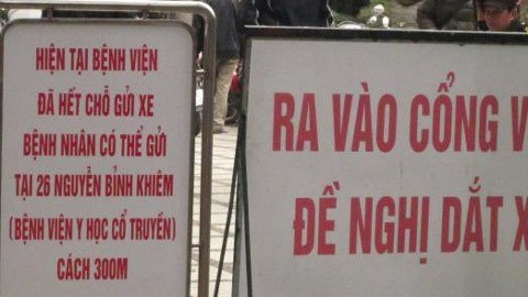 Trước đó, dù mới khoảng 8 giờ sáng, các bãi đỗ xe trong và ngoài BV phụ sản TƯ đều đã treo biển: “HẾT CHỖ GỬI XE”. Các bãi gửi xe trong và ngoài BV đều đã chật kín hết chỗ. Rất nhiều bệnh nhân và người nhà đến khám bệnh khi hỏi: “Còn chỗ gửi xe không chú, còn chỗ gửi xe không anh?...” thì đều nhận được câu trả lời: “Hết chỗ gửi rồi, ra ngoài đi”.