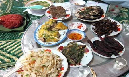 Thoả con mắt, giờ sẽ thoả “cõi lòng”. Du khách đói bụng, đã có cơm nếp Tú Lệ dẻo thơm lót dạ. Tráng miệng, đã có trà Shan Tuyết - thứ chè được hái từ những cây chè cổ thụ hàng trăm năm tuổi mọc ở Suối Giàng - làm ấm lòng. Và đến tối, khi dừng chân ở Nghĩa Lộ, bạn khó có thể cầm lòng trước chén rượu nếp do các cô gái Thái mời chào. Bạn sẽ được đãi món cá chép suối nướng (pỉnh tộp), cá suối rán, thịt xông khói, tôm bàng, rau dớn... vừa nhấm nháp vừa ngắm điệu Thái xòe, đến khi ngà say còn gì hơn là được cùng nắm tay các cô gái Thái múa xòe, nhảy sạp.
