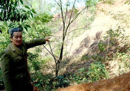 Ông Ngoang chỉ nơi người dân khoét núi mở vườn, bán đất.