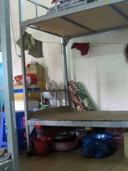 | Những chiếc giường vừa là “nhà” của người nhà bệnh nhân. Vợ chồng chị Hải có hai người nhưng cũng chỉ được ngủ chung một giường. |