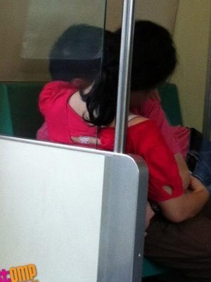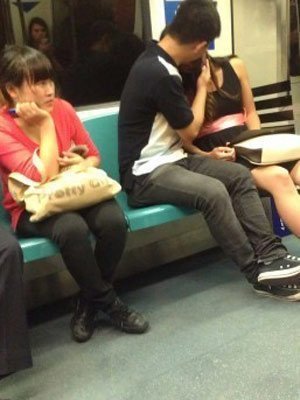 Trong góc khác của toa tàu, cặp đôi này thậm chí còn hồn nhiên làm những động tác thân mật thái quá như đang ở chốn không người.
