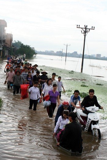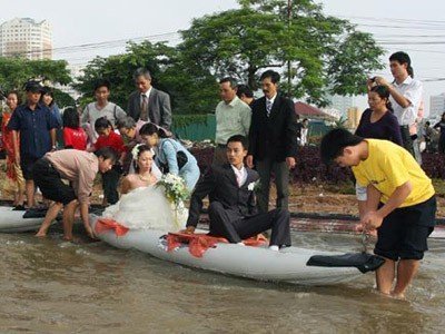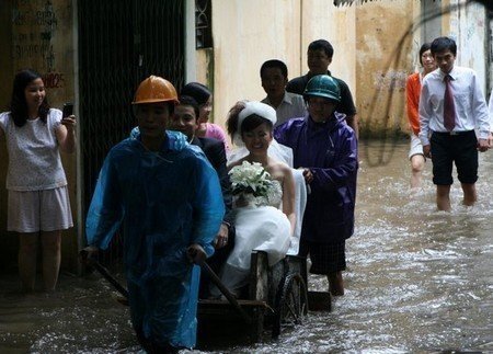 | Đám cưới trong lũ ở làng La Tinh (Đông La, Hoài Đức, Hà Nội) 2008. |