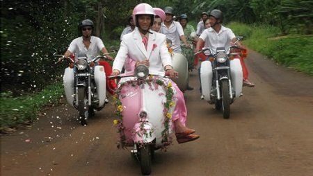 | ...và Vespa. Các đám cưới như thế này thường là của một hội chơi xe. |