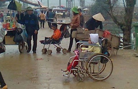 Điều đáng nói, ăn mày ở đây có ăn mày giả và ăn mày thật. Ăn mày thật là những người già, người khuyết tật thực sự. Còn ăn mày giả là những người còn lành lặn nhưng giả dạng khổ sở để xin tiền quan khách.