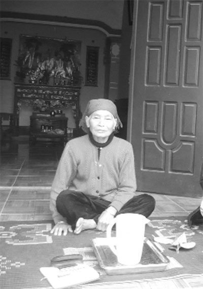 | Bà Lê Thị Quàng đang kể lại truyền thuyết về ngôi đình Mó Lặn ngày đó |