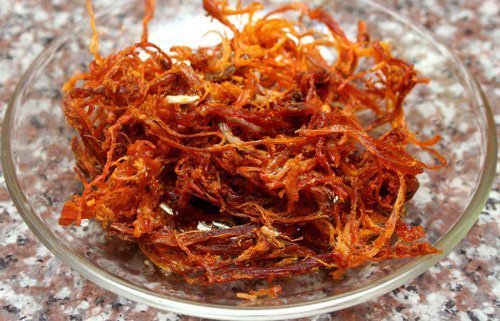 hình con cờ sau đó chiên giòn kết hợp với trứng và dùng với nước chấm.
