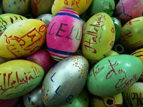 Chữ xuất hiện nhiều trên những quả trứng phục sinh là Halleluia hoặc Alleluia với nghĩa ca tụng Thiên Chúa