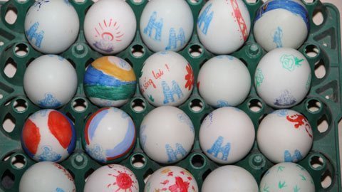 Miệt mài vẽ đến 11h đêm. Mỗi dịp lễ Phục sinh, các em vẽ hơn 500 quả trứng.