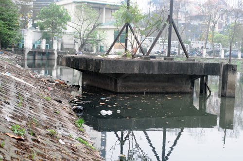 Hồ Đền Lừ nước đen bẩn, mùi thối bốc lên nồng nặc mỗi khi đi qua.