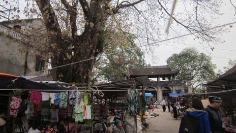 Hôm nay vào đúng phiên chợ chính (20 âm lịch) nên chợ rất đông, nhiều chị em và cả các bà, các cụ mang nón ra chợ bán. Những chiếc nón trắng tinh, đủ loại được bày bán ngay cạnh ao làng, gợi lên một không khí đậm chất làng quê Việt Nam.