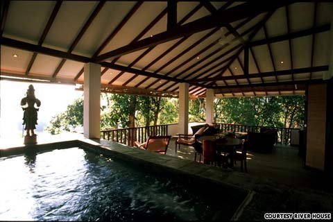 Hãy tạm quên bữa sáng trên giường và đánh thức nhau nhảy xuống hồ bơi quay về hướng đông, khi mặt trời mọc quá ngọn cây dừa ở biệt thự River House ở Sri Lanka. Giá thuê: 373-485 đô la/đêm.