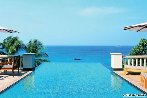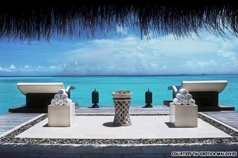 Trước khi phơi bày da nhạy cảm với ánh mặt trời, du khách ở Taj Exotica có thể bơi trong bồn tắm da bò với bốn tắm trải nghiệm tắm nóng và lạnh khác nhau, chiếc giường đặt ngay bên bờ biển với trị liệu bằng thảo dược và bùn. Giá phòng 800 đô la/đêm.